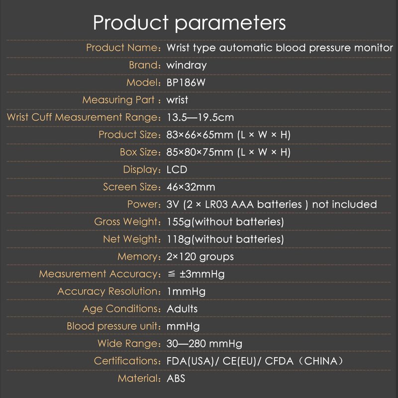 - * (Note: Automatic blood pressure monitor use 2 AAA Batteries, The product Not include Batteries ).