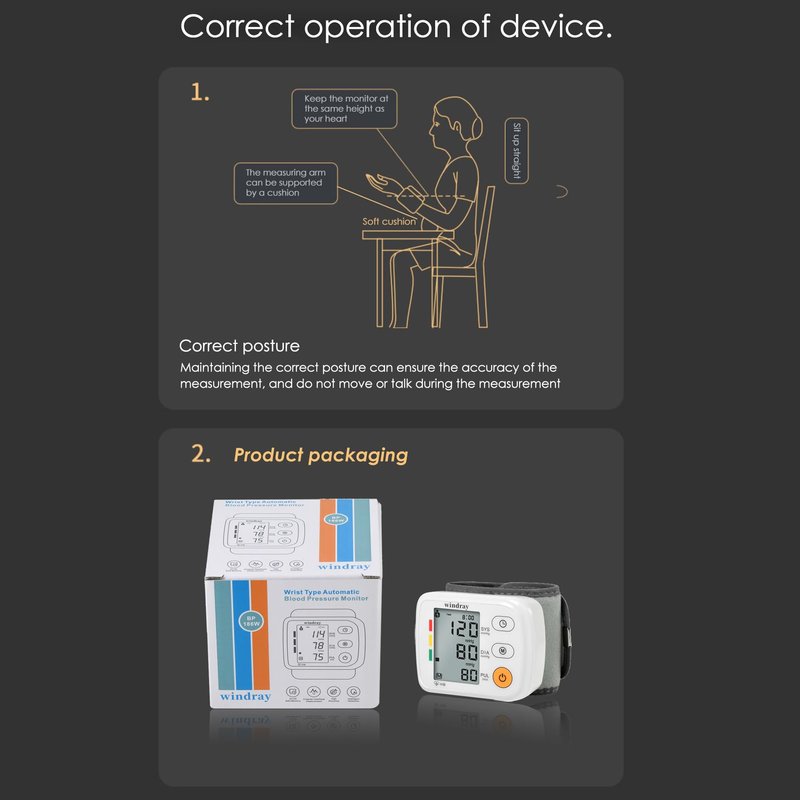 Wrist Blood Pressure Monitors Windray Automatic Digital BP Machine Accurate - Adjustable Cuff,Portable LCD Display 120 * 2 Readings Memory Function