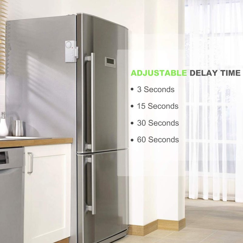 - Wireless freezer alarm goes off if the freezer door stays open for 3/15/30/60 seconds, you can easily to set the delay time as your need. It will only alert you when freezer door has been left open for 3s/15s/30s/60s, it will not annoying you while you want the door open