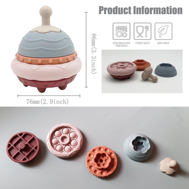 - 【Special Baby Gift for Boys and Girls】UFO stacking toys is the ideal gift for kids. Child will be definitely surprised to receive it on a birthday or holiday, perfect for babies 0-6-12 months old!