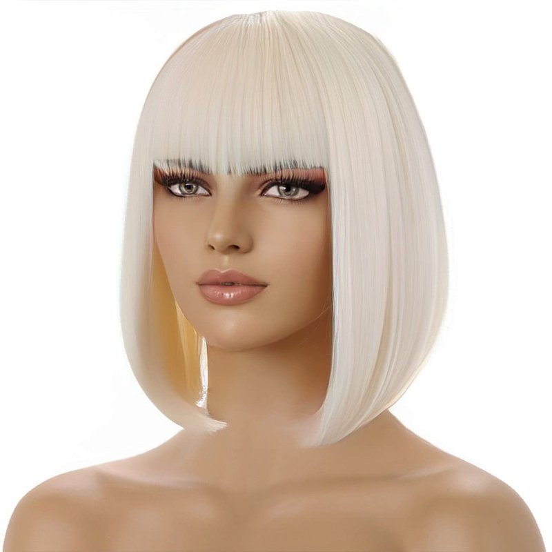 WTHCOS Blonde Wig with Bangs Short Straight Blonde Wig Short Blonde Wigs for Women Platinum Blonde Wig Bob Synthetic Wigs Daily Cosplay Party Wig with Wig Cap