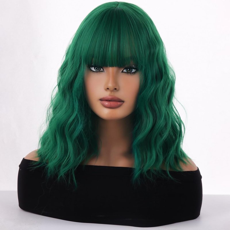 - Premium Synthetic Wig: Crafted from high-quality synthetic fibers, this green WTHCOS short curly wavy Hair Wig offers a soft and smooth texture.