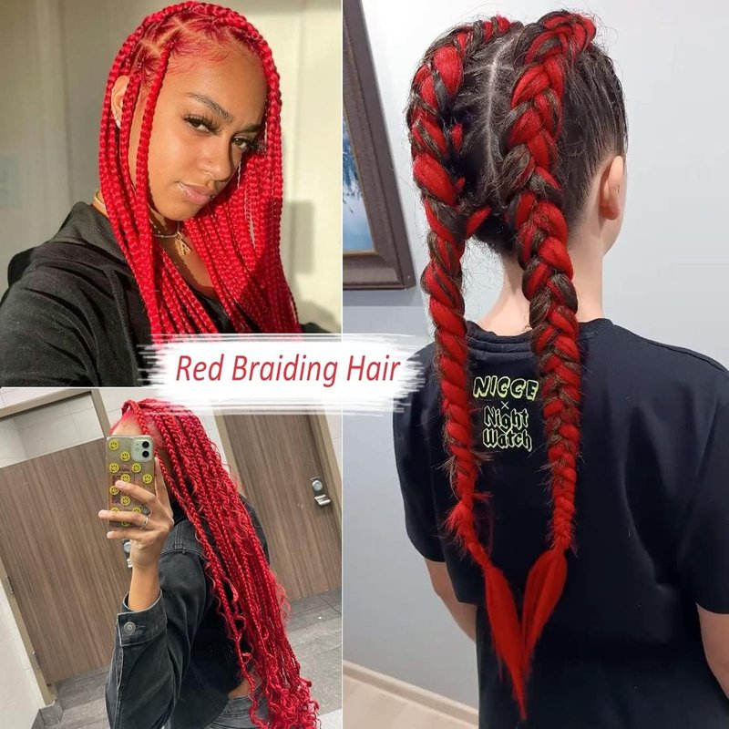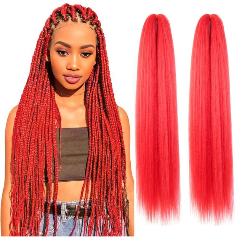 WUDAS Red Braiding Hair 30 Inch Long Pre Stretched Hair Straight Yaki Texture Synthetic Hair Extensions Softness, 2 Packs