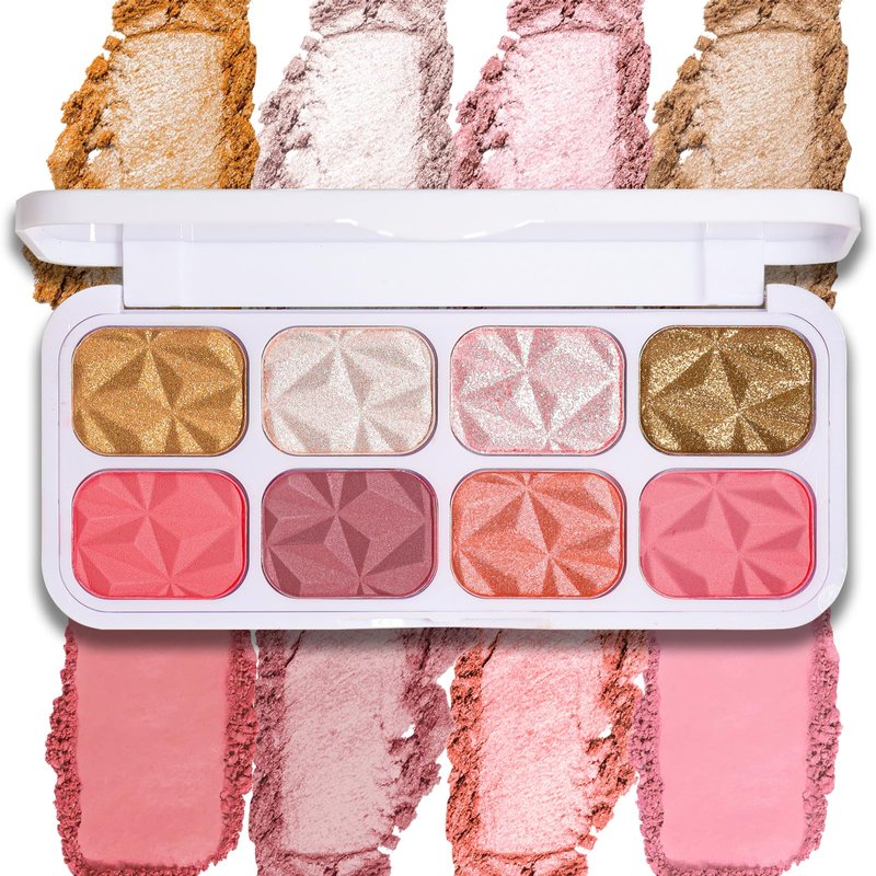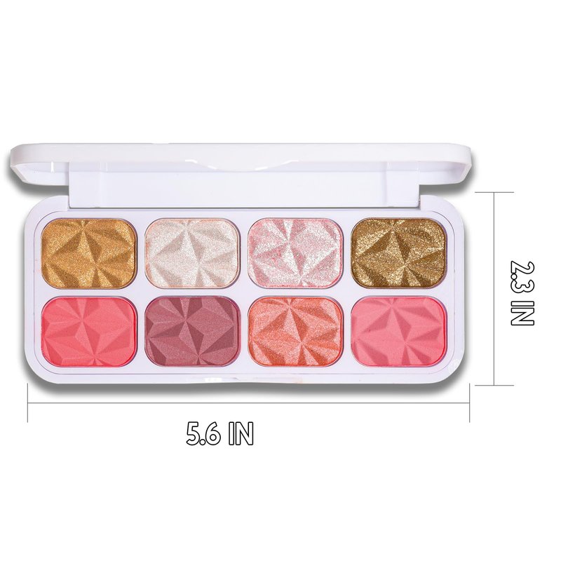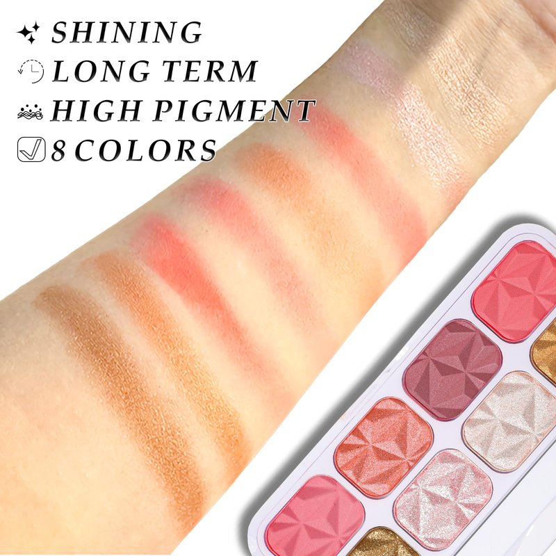- 【8 Colors Blush Highlighter Makeup Palette】 This multi-functional palette contains 8 colors blush with shimmer texture. A newly upgraded color collection solves different styles of makeup in one 8-color palette.