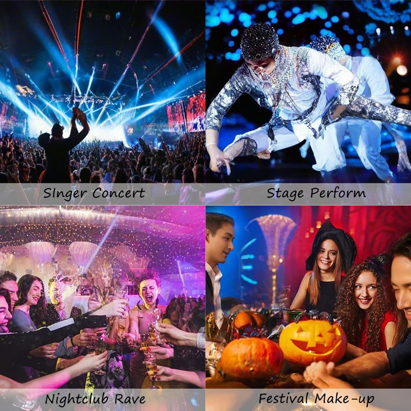 - Festival Rave Accessories for Women: This glitter gel and colorful hair tinsel is perfect for rave accessories, holiday accessories, and mermaid accessories at parties, bars, weddings, shows, singer concerts, Halloween, Christmas and more. Glitter gel can be used as face glitter, eye glitter, cheeks, lips and hair glitter, etc. Creates a charming, eye-catching effect that glows in the crowd.