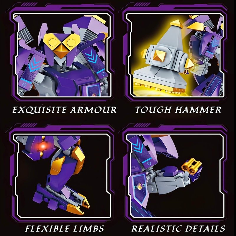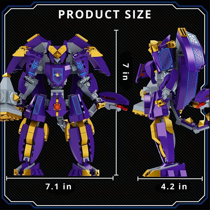 - Mech Adventure Construction Set: The spirit beast mech building set inspired by mythological scenes. The combination of purple and gold creates an amazing visual impact. Includes 298 building blocks and clear instructions, making assembly easy