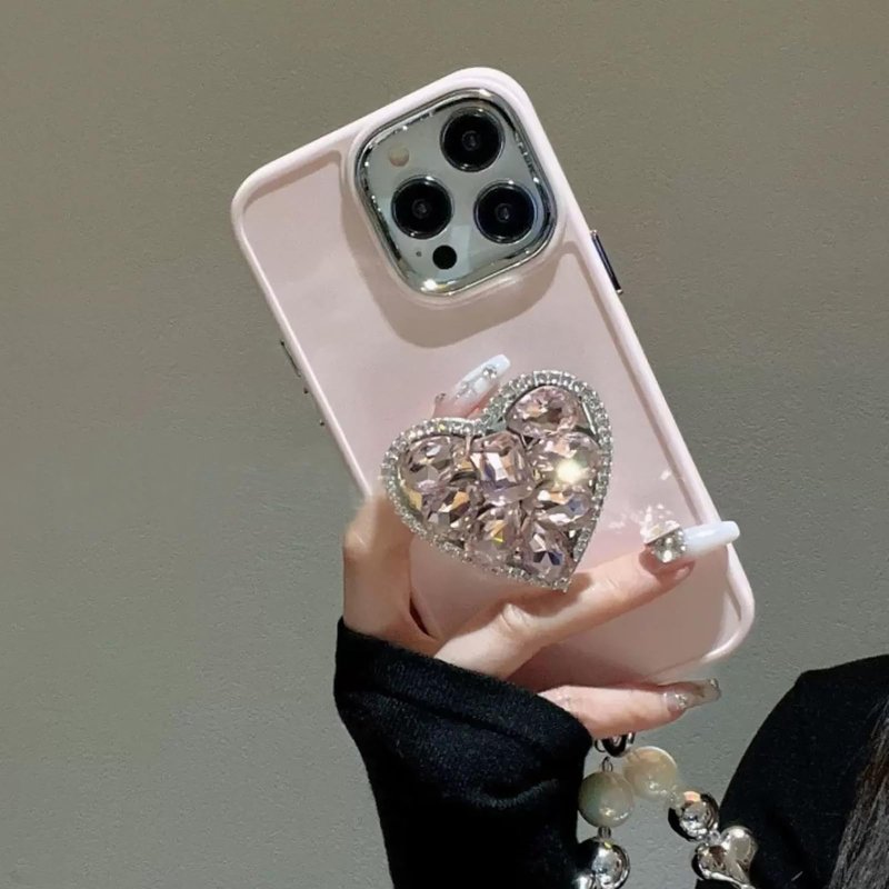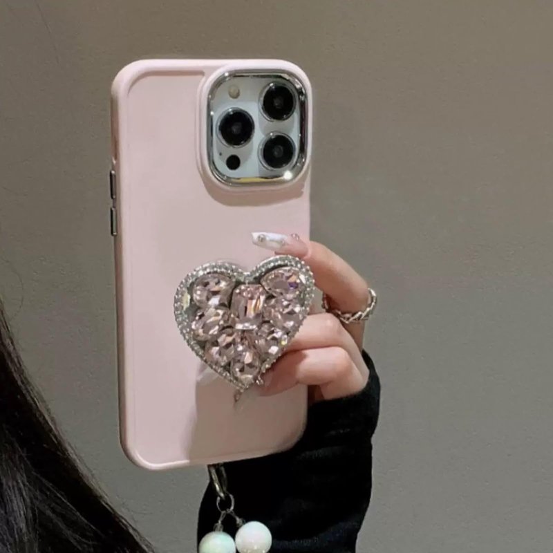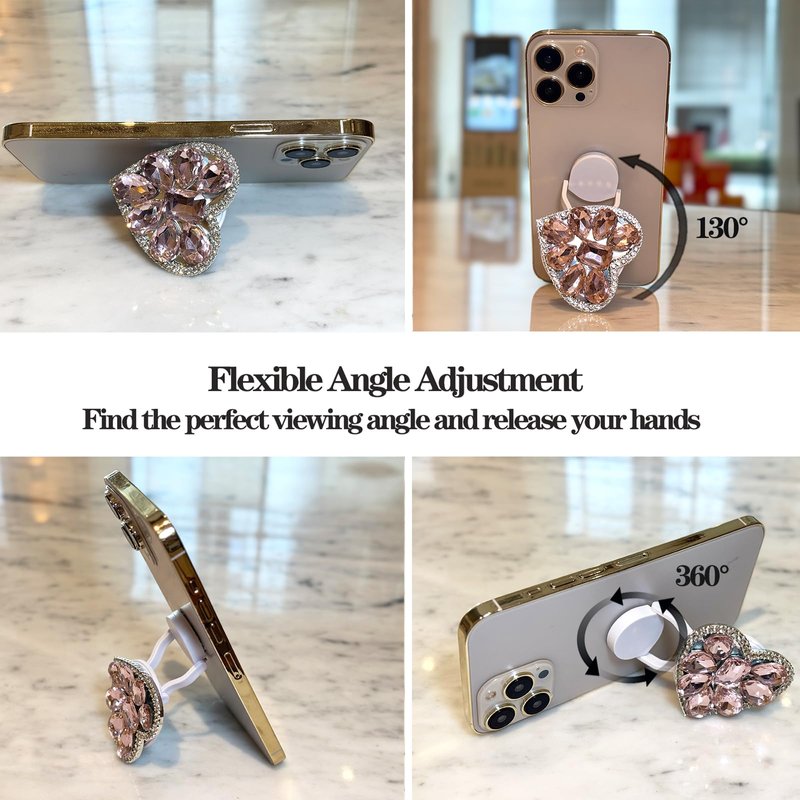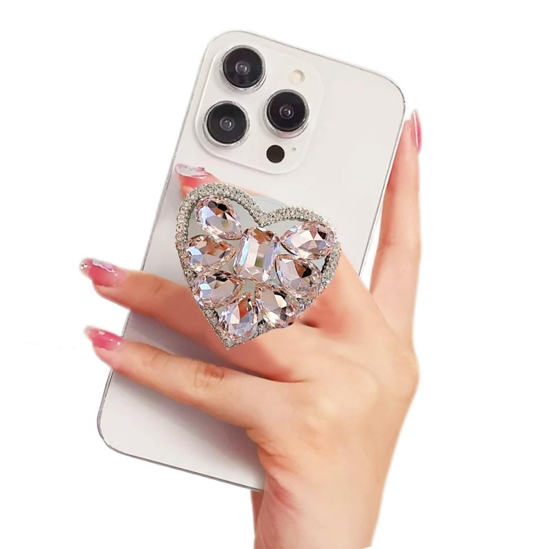 WUOJI Cute Glitter Color Heart Shape Collapsible Expandable Multi Functional Mobile Phone Grip & Kickstand (Pink)