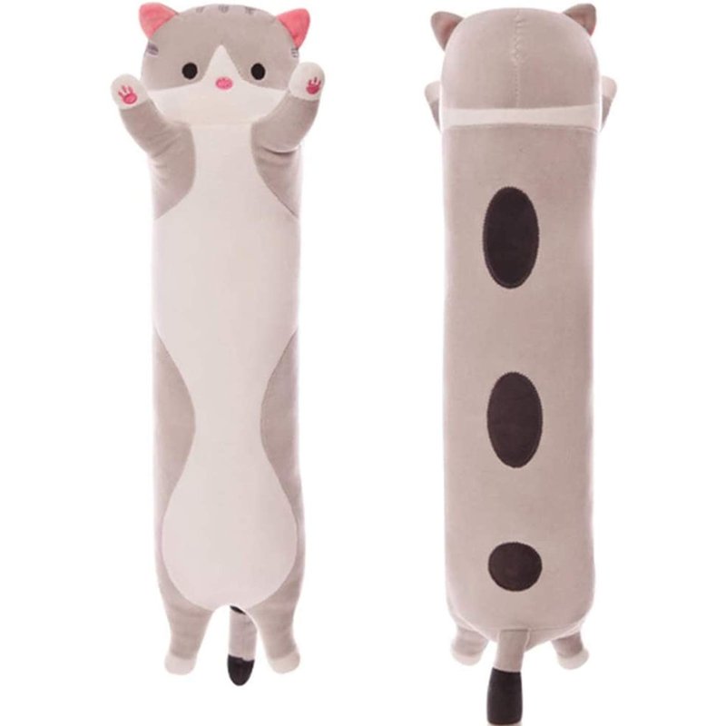 WUYU Lovely Plush Cat Doll Cute Cartoon Soft Stuffed Kitten Pillow Long Throw Sleeping Pillow Doll Toy Gift for Kids Girlfriend Multiple Size (Grey,50cm/19.6in)
