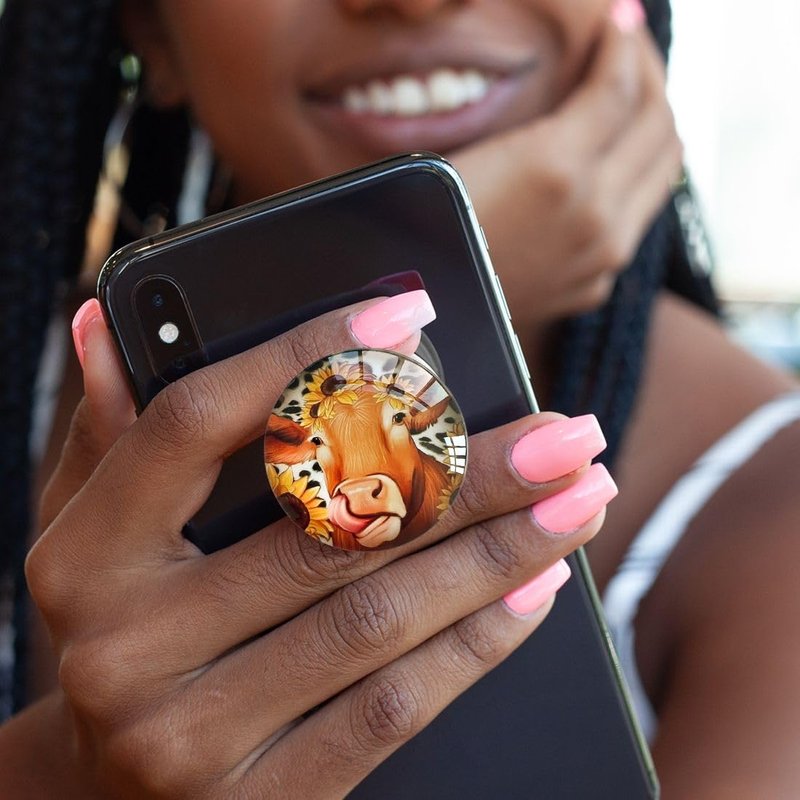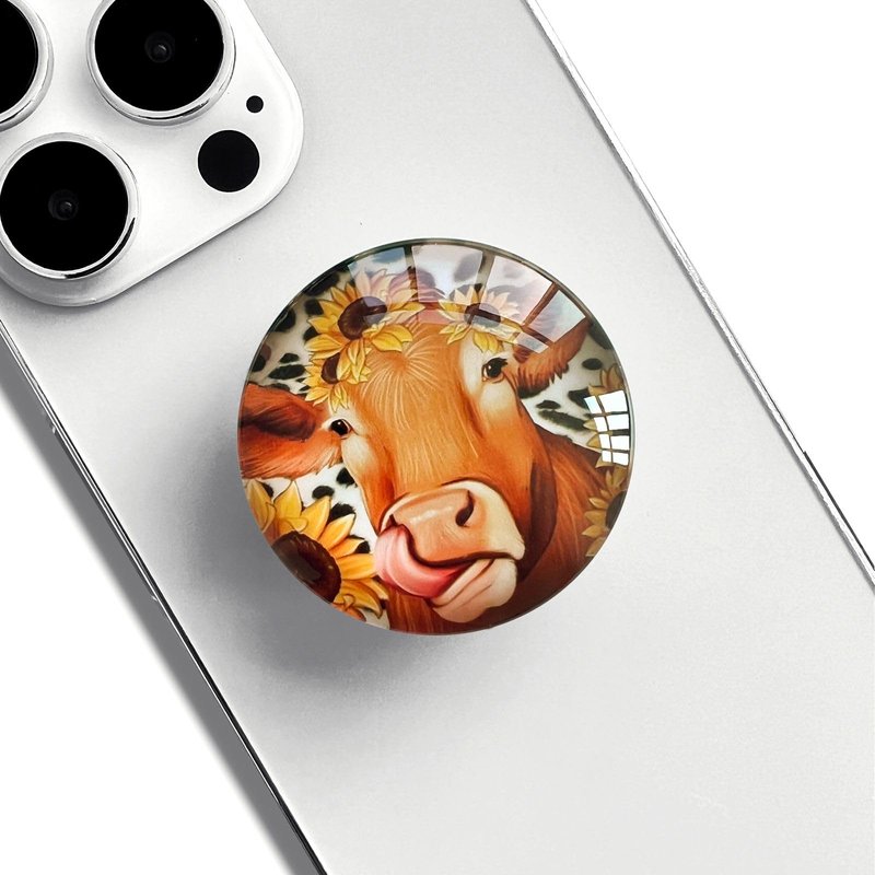 WUYULB Clear Crystal Glitter Expandible Collapsible Moblile Phone Grip Stand Holder for Smartphones and Tablets Cell Phone Accessory(Sunflower and Cow)