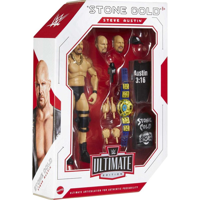 - Recreate your favorite Stone Cold Steve Austin moment from entrance to Stone Cold Stunner -the Ultimate Edition action figure comes with swappable heads and interchangeable hands!
