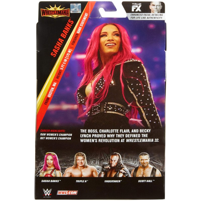 - One of WWE's biggest personalities and champions, this Elite Sasha Banks action figure from WrestleMania 32 captures all the blowout action!