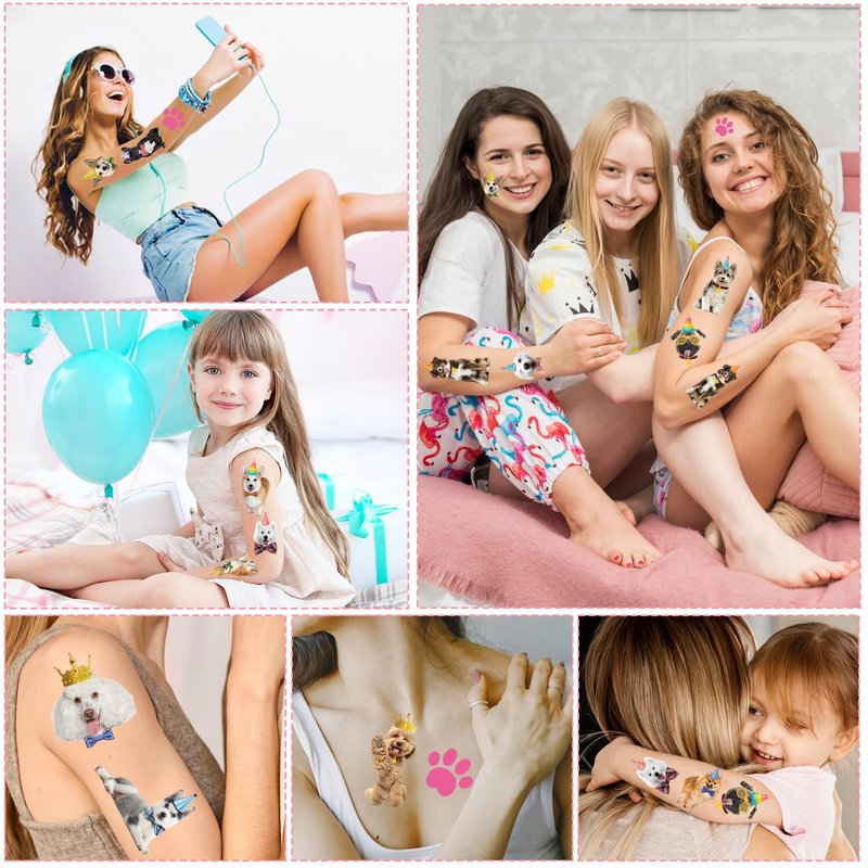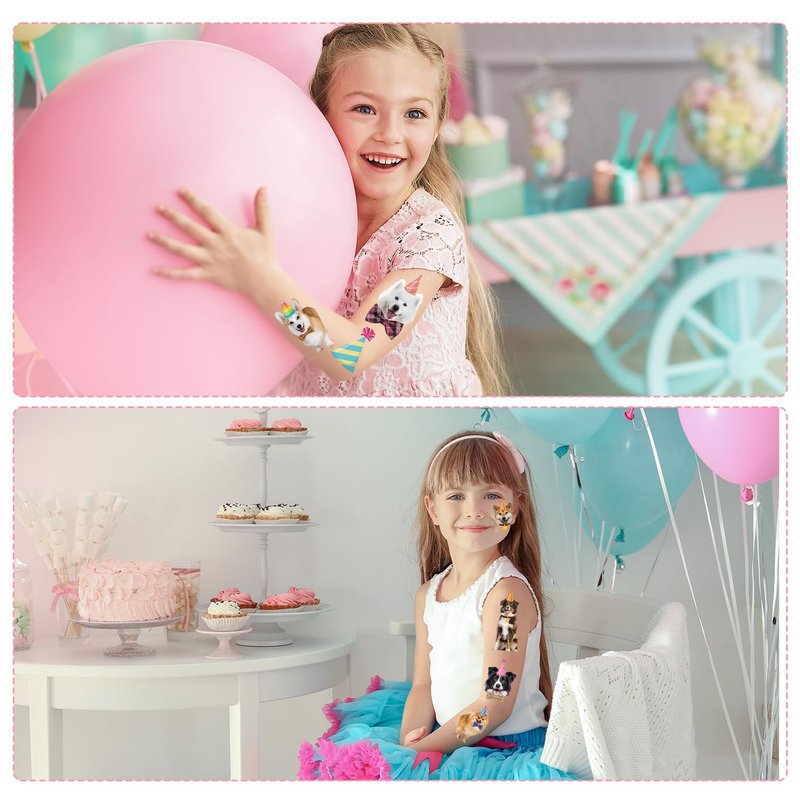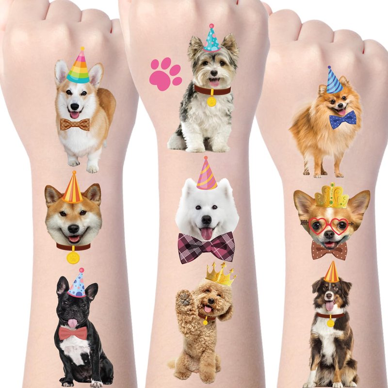 - Dog Temporary Tattoos: You will receive 8 cute puppy tattoo stickers, combining dog and birthday elements, as well as cute dog footprints and bones, more than 20 patterns, and full of fun and vitality. It is attractive to young people and children.