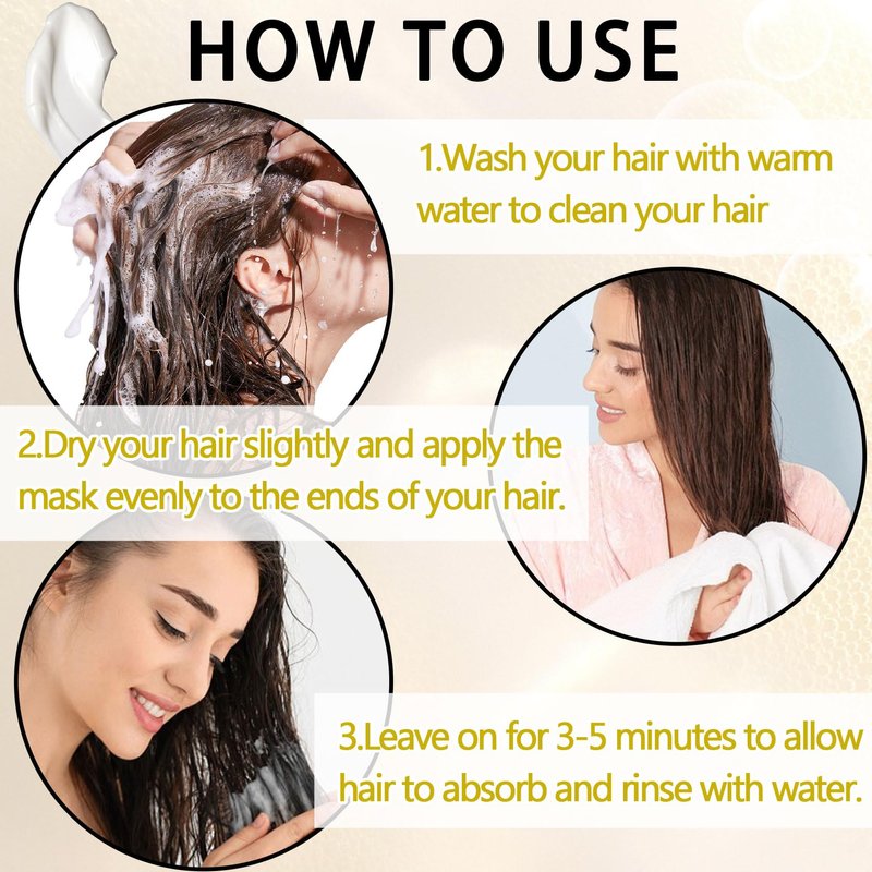 - 🦋【Easy to Use】Easy to use Hair mask is very simple to use, you just need to clean your hair, gently dry your hair, then evenly apply the hair mask, leave it for a few minutes and then rinse it off. It is suitable for your long-term use, the effect will be better.
