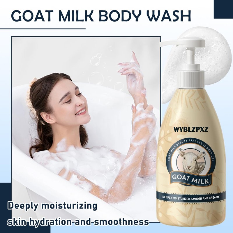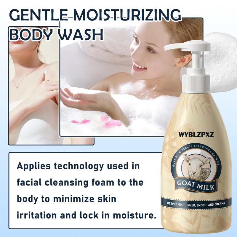 WYBLZPXZ Goat Milk Body Wash for Women & Men,Foaming Mostiurizing Shower Gel for All Skin Types,Silky Long Lasting Hydrating Non-greasy Body Wash Cleanser