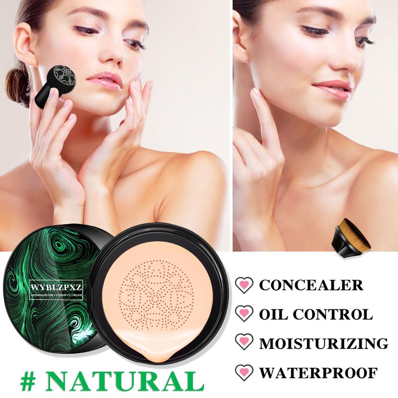 👍Mushroom head air cushion cc cream natural plant formulas, delicate texture and lightweight, long-lasting waterproof, moisturizing, easy to cover the face blemishes, hide pores, can instantly smooth uneven skin tone, easy to get a perfect and flawless skin.