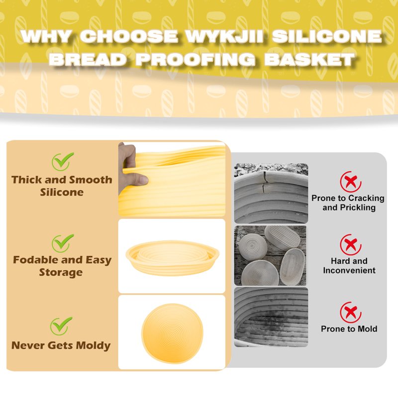 - Reliable Material: WYKJII silicone bread proofing basket set is made of high-quality thickened food-grade silicone, which is BPA-free, non-stick and durable. The non-stick material allows you mixing and fermenting the dough directly in the basket.