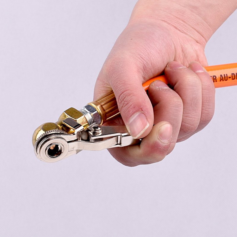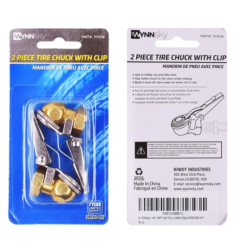 This is WYNNsky 1/4" NPT Ball Foot Air Chuck with Clip, it is a standard brass ball foot air chuck with an attached steel clip for holding the chuck in place on the valve stem during air filling operations. Use to inflate car and bike tires. And built in shut-off valve seals air when not in use. High quality Air ball chuck made from strong brass and zinc with clip. The Ball End Chucks offer a more traditional, ergonomic angle.