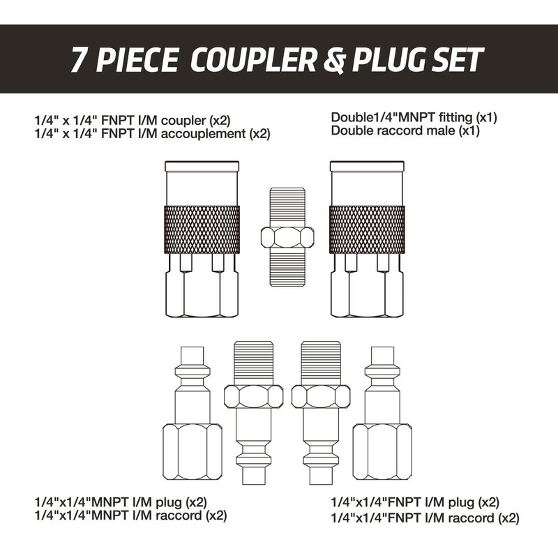 WYNNsky Air Coupler and Plug Kit, 1/4 Inch NPT Air Fittings Industrial Type, 7 Piece Air Compressor Accessories Kit