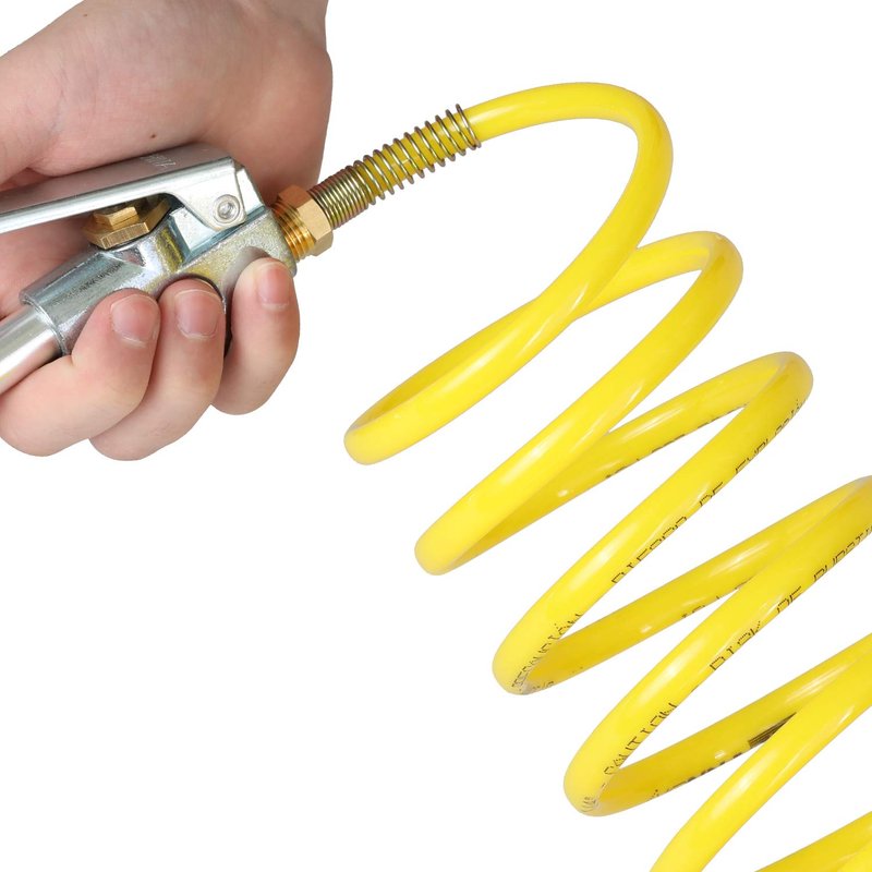 WYNNsky Coiled Air Hose, Nylon Material, Anti-Corrosion, Abrasion Resistance, 1/4 Inch × 12 Feet, 1/4 Inch NPT Brass Air Compressor Accessories Fittings, 200PSI