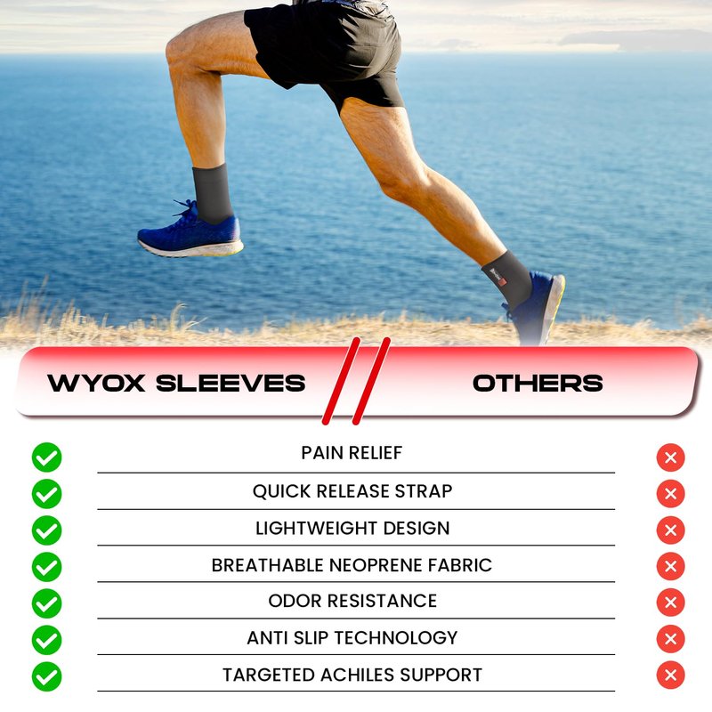 WYOX ankle wraps are made of proprietary blend of latex infused nylon and cotton, these premium threads are then machine knitted to ensuring targeted compression to tendons, ankle and heel ensuring maximum support and increased performance by 25%. All natural premium cotton is highly absorbent and soaks moisture / sweat, thus offers high breathability.