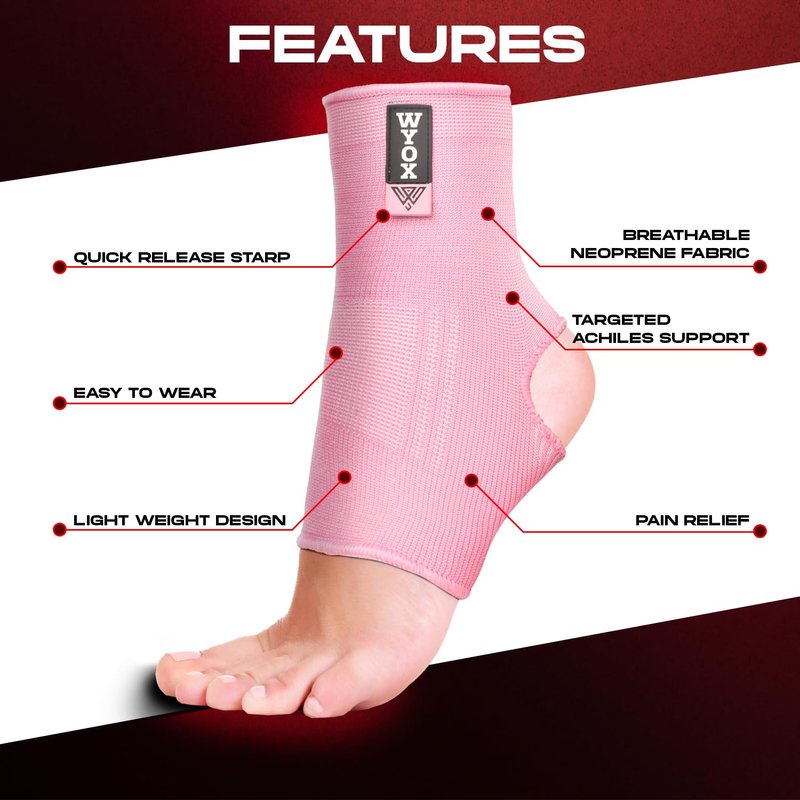 WYOX ankle support braces offer flexibility and extra support to a weak or previously injured ankle. The ankle protecting sleeve offers compression to ankle joint and surrounding tendon muscles. Open toes offer better grip during combat sports, motion flexibility. Optimal blend of cotton and nylon blend offers balanced heat to the ankle and tendons thus reliving any pain and stress caused due to repetitive motions and/or overuse. Perfect cure / healing mechanism for injuries, sprains, strains. Ideal ankle supports for women and men, also known as Ankle Protection, Compression Feet Elastic Brace Wraps.