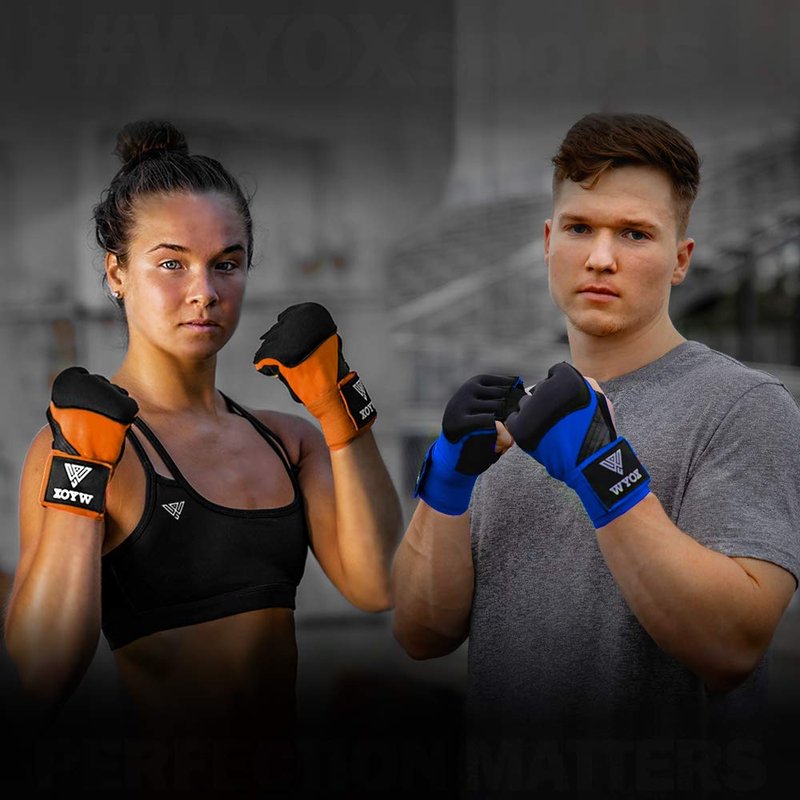 WYOX Quick-Wrap kickboxing gloves for women & Men Features: Super Thick (8mm) Neoprene Gel knuckle Shield to Ensure Maximum Protection & Comfort. Maximum Impact Area Coverage Cushion (Stitched for Durability) Lightweight Breathable Mesh offers Palm breath-ability, Comfort & serves as boxing gloves deodorizer. Amara Infused Lightweight Mesh Offers Enhanced Durability. Elasticized wrap material on the weighted gloves offers maximum comfort during strenuous training. Expect durability and air permeability through the Japanese Amara Palm that is fitted on the boxing hand wraps. The training gloves have a neoprene wrist enclosure that has hook and loop to ensure that the glove is tightly fastened around your wrist. Ideal boxing tape for hands, wrist wraps boxing mma gloves, Men Womens boxing gloves, boxing wraps women, wrist wraps boxing, men fighting gloves, mma sparring gloves, mma gloves women boxing gloves boxing wrist wraps boxing gear wrap, kids boxing wraps, heavy bag gloves women, ufc gloves men, kids muay thai gloves, heavy bag gloves, kick boxing equipment. Advance Protection || Super Shock-absorbing Neo Gel Padded Knuckle Shield Maximum Comfort || Easy-on Hand wraps / Easy-off loop / Velcro Closure Wrist wrap Enhanced Durability || Japanese Amara Infused Breathable Mesh Allows Air Permeability Improved Design || Max Impact Coverage, Stitched Contoured Gel Neoprene WYOX sports || 100% Customer Satisfaction / Dedicated Customer Service rival sparring gloves