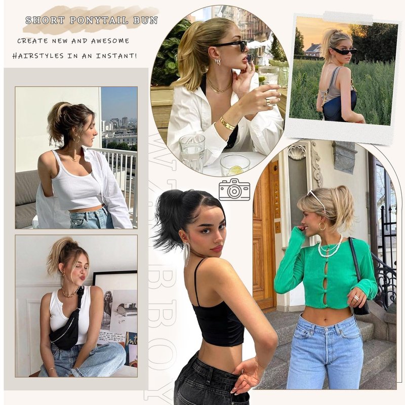 - 【Easy to Use】The 9-inch short ponytail bun Layers give it a natural appearance, while its lightweight design ensures comfort. The sturdy claw clip keeps it secure all day. Easy to use, simply tie your hair into a small bun or short ponytail, then attach the claw clip for a perfect style in just one minute. Ideal for short or fine hair, this bun creates a natural hairstyle effortlessly.