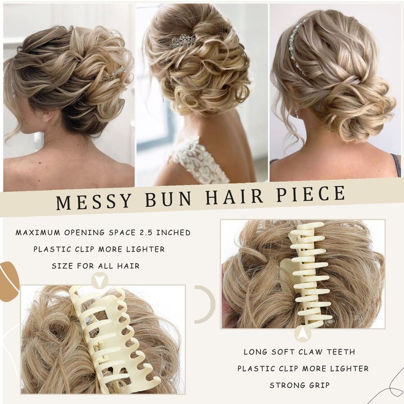 - 【Easy to Use】This claw clip hairpiece is an easier way to achieve a secure and non-pulling updo style,only take 5 seconds,give you an instant hairstyle in a hurry,messy hair bun can be adjusted easily to work for the thin hair, medium hair or thick hair.Easy to Wear Add Your Hair Volume.You can also cut the tendrils,thus turn a normal messy hair bun.