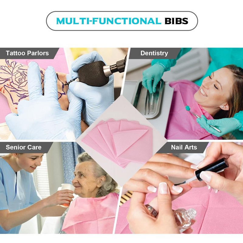 - Color: 50pcs Pink Dental Bibs + 5pcs 3mm Tattoo Practice Skin