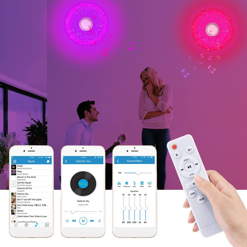 Built-in Bluetooth Speaker: The LED Music Ceiling Light comes equipped with a built-in Bluetooth speaker, allowing you to easily connect multiple mobile phones and stream your favorite music wirelessly. Immerse yourself in the joy of music with disco dance and dancing lighting effects that sync with the rhythm, creating a vibrant atmosphere in your room.