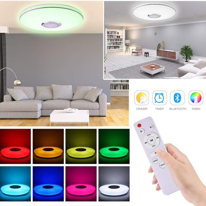 - 【APP + Remote】: (The remote control and manual are inside the lamp body)36W RGB LED Ceiling Lights with a remote control, which you can adjust the brightness and color temperature as well as the volume of music. It also offers a night light mode. You also can control it by smartphone app.(Does not support alexa for light)