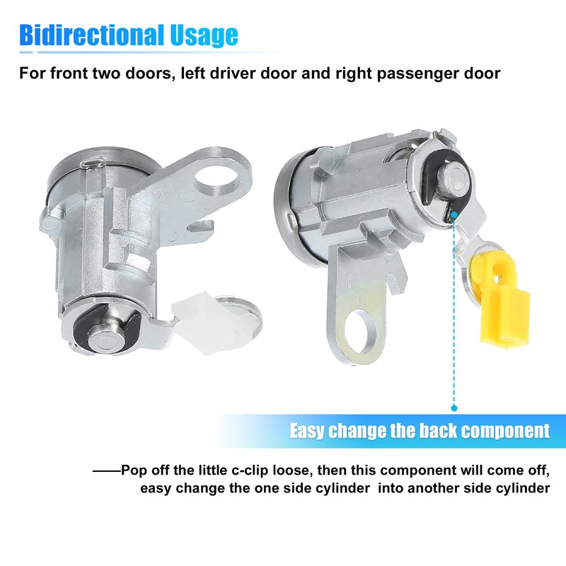 - [Package] Include 1x left front driver side door lock cylinder, 1x right front passenger side door lock cylinder, 2x keys. Check relevant replace video when you in doubt.