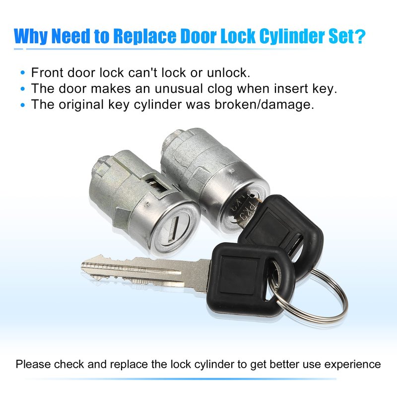 - [Function of Door Lock Tumbler w/2 Keys] Replace damage, clogging or old door lock cylinder, you will avoid to facing problems like unable to lock/unlock car door, or cannot turn the door handle, enjoy your driving route.