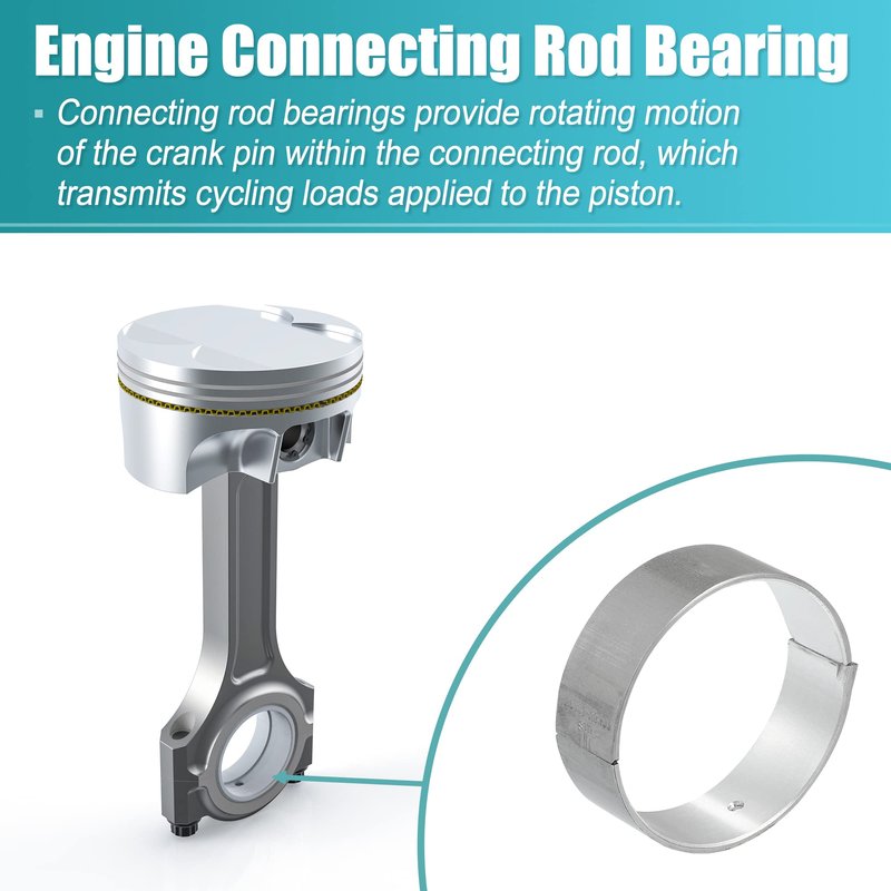 - [Function] Connecting rod bearings provide rotating motion of the crank pin within the connecting rod, which transmits cycling loads applied to the piston. Connecting rod bearings are mounted in the Big end of the connecting rod.