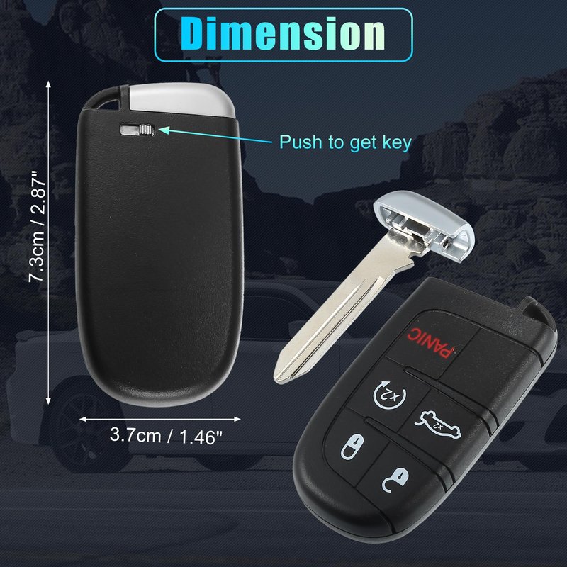- Pros of our keyless remote: With built in chip, sensitive response, 5 buttons car key: remote locking, unlocking, panic, trunk opening, etc. Fast response, wireless remote control. Please confirm the original key has the same button pattern and the vehicle is equipped with the push to start option.