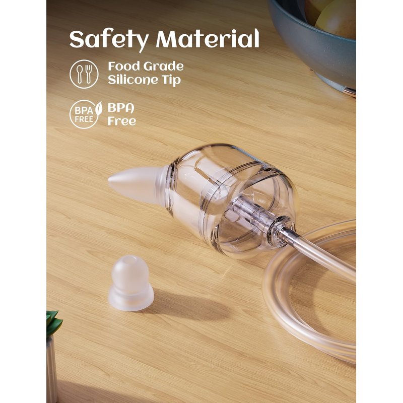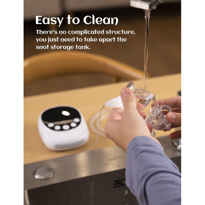 - 【Safe & Easy to Clean】Equipped with two food-grade, BPA-free silicone tips,and the anti-backflow device pays more attention to hygiene issues.With a detachable design, you only need to clean the snot storage tank and silicone tip after use, saving time and energy.