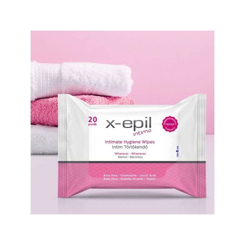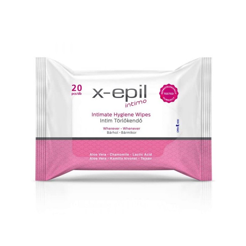 X-Epil - Vegan Intimate Hygiene Wipes – 20 pcs - pH-Balanced & Hypoallergenic Wipes For Daily Hygiene Routine - Gentle Cleansing for Sensitive Skin (Normal)