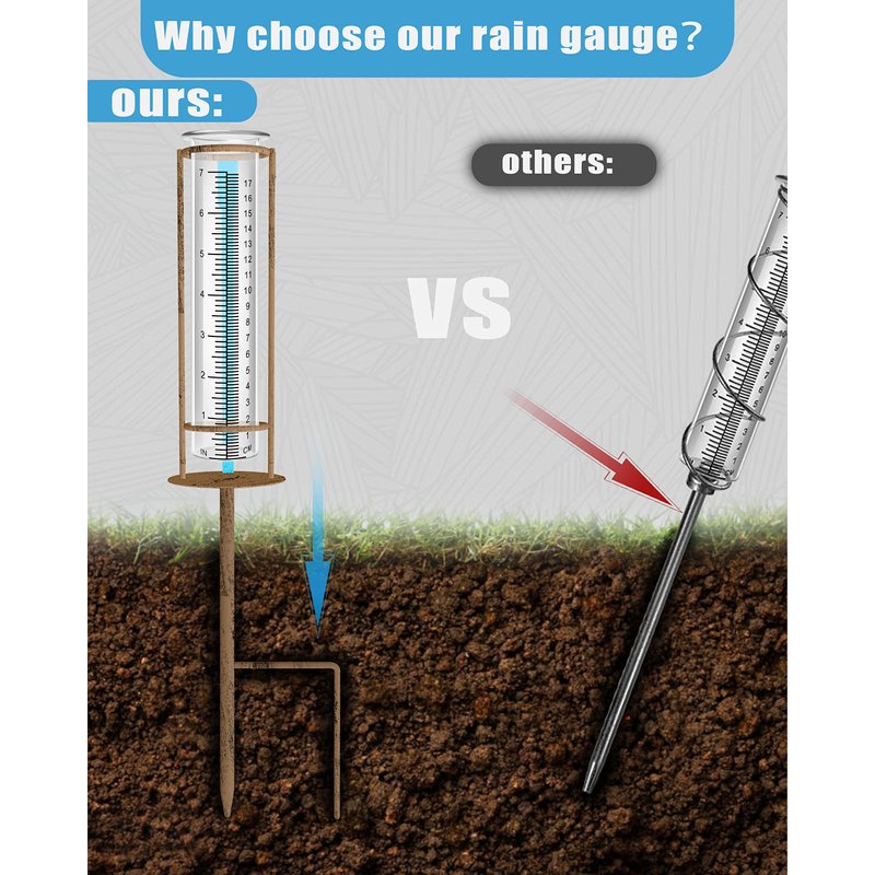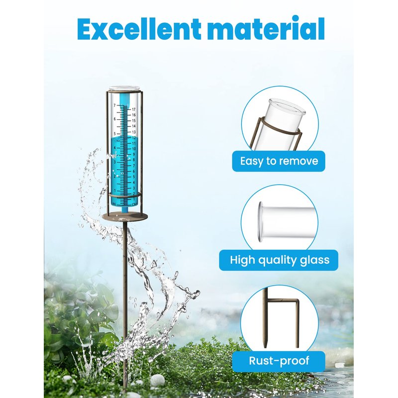 - [Quality Material] The rain gauge is made of metal stakes,rust-proof and upright.The glass tube of the rain gauge is tested to prevent freezing and cracking,and packed well with bubble bags.