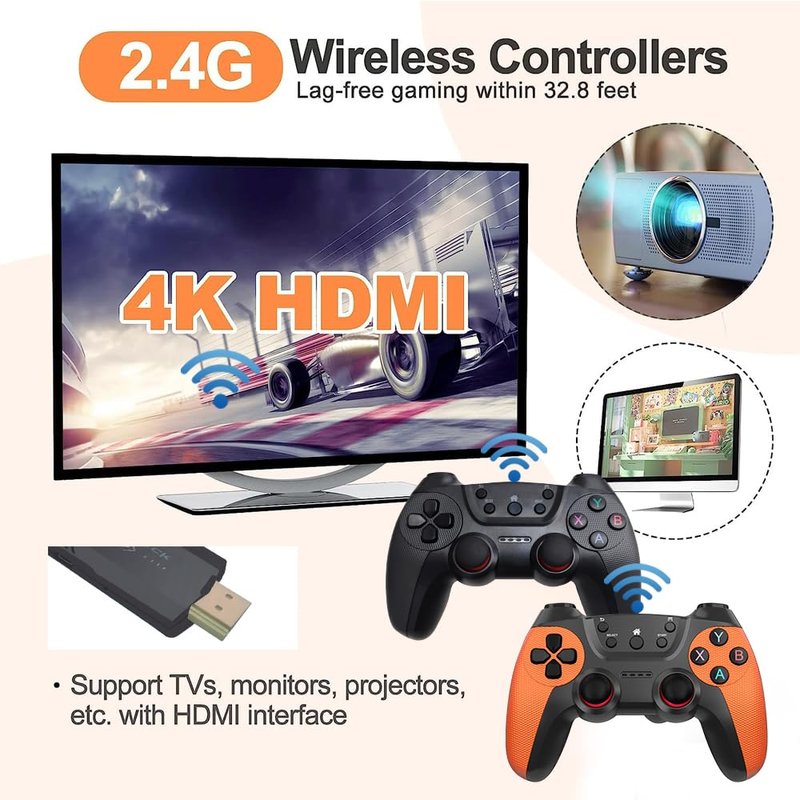 - Relive the Classics Games :The 128G TV Game Stick retro classic nostalgic game console comes with 40000+ two-person battle games, invigorating you of the childhood.