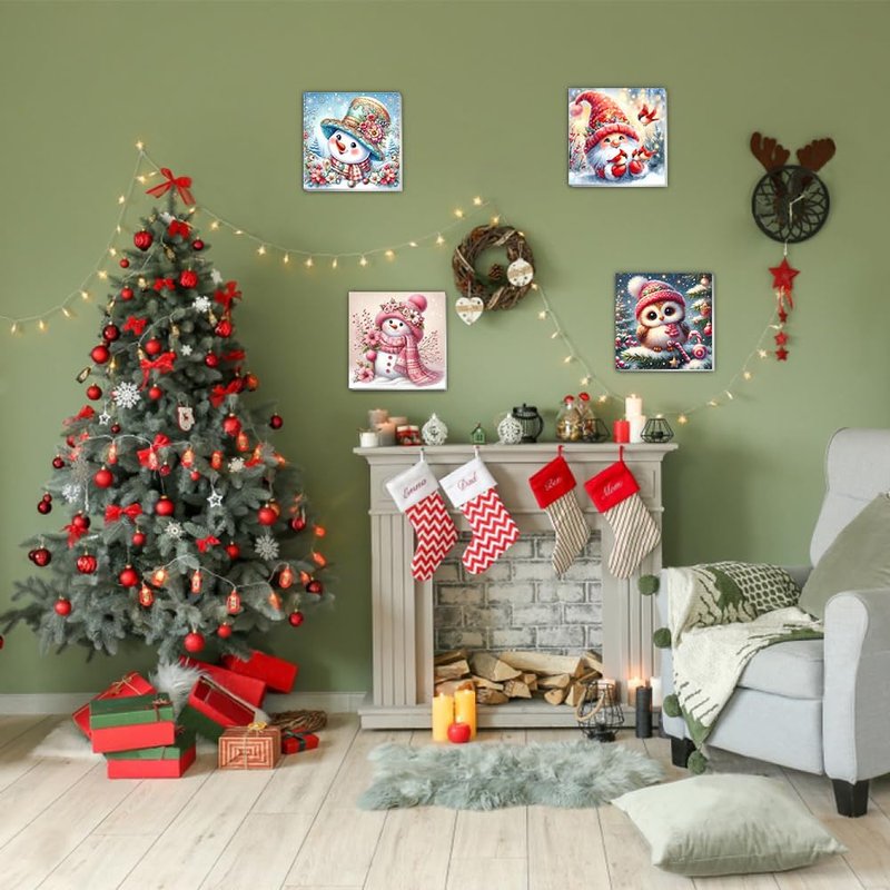 xackcme 4 Pack Christmas Paint by Number for Kids with Wooden Frame-Paint by Numbers for Kids Xmas Ages 4-8-12,Easy Gnome Snowmen Owl DIY Acrylic Oil Painting Kits for Home Wall Decor(8X8inch)
