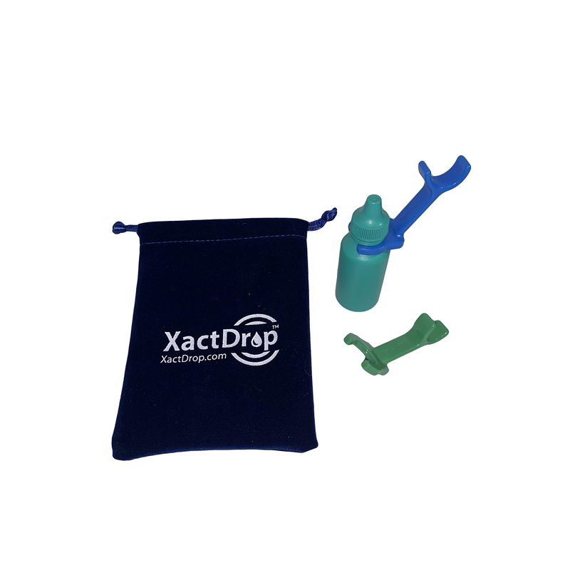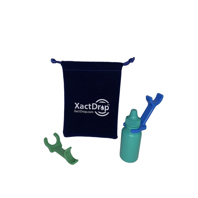 XactDrop designed to apply Eyedrops better. Save Money, Less Stress, Easy to Use. XactDrop was created by an opthalmologist and researcher. Most people have problems using eyedrops. In fact, over 85% of people studied were unable to use drops without touching the tip of the eye drop bottle to their eye, risking infection, irritation, and contamination of the bottle. XactDrop is a solution that keeps the bottle tip accurately aimed at the eye while minimizing eye contact. Additionally, it holds the eye drop bottle steady so shaky hands aren't a problem. Best of all, XactDrop is affordable and reusable. XactDrop is easy to use for people of all ages, and can be used by anyone who uses eyedrops, including: -Cataract patients, gluacoma patients and others who use therapeutic eyedrops -Contact lens wearers who apply lubricating eyedrops regularly -Those using eyedrops for allergies, dry eyes and acute infections. -Parents and caregivers, you will feel more at ease using XactDrop knowing you don't have to hold the eye drop bottle close to the eye and risk touching the eye with the tip. Doctors Recommend XactDrop to patients to help them apply eyedrops as directed. Device is protected by various issues and pending patents.