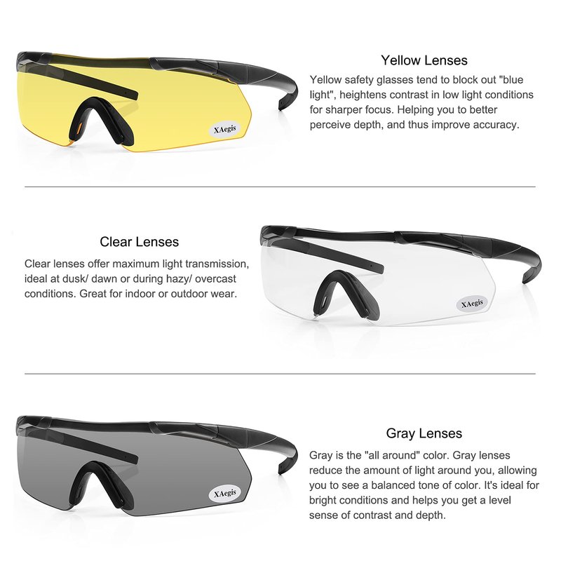 XAegis Tactical Shooting Glasses with 3 Interchangeable Lens High Impact Eye Protection for Range Safety Glasses Included Yellow,Clear, Smoke Grey Lens