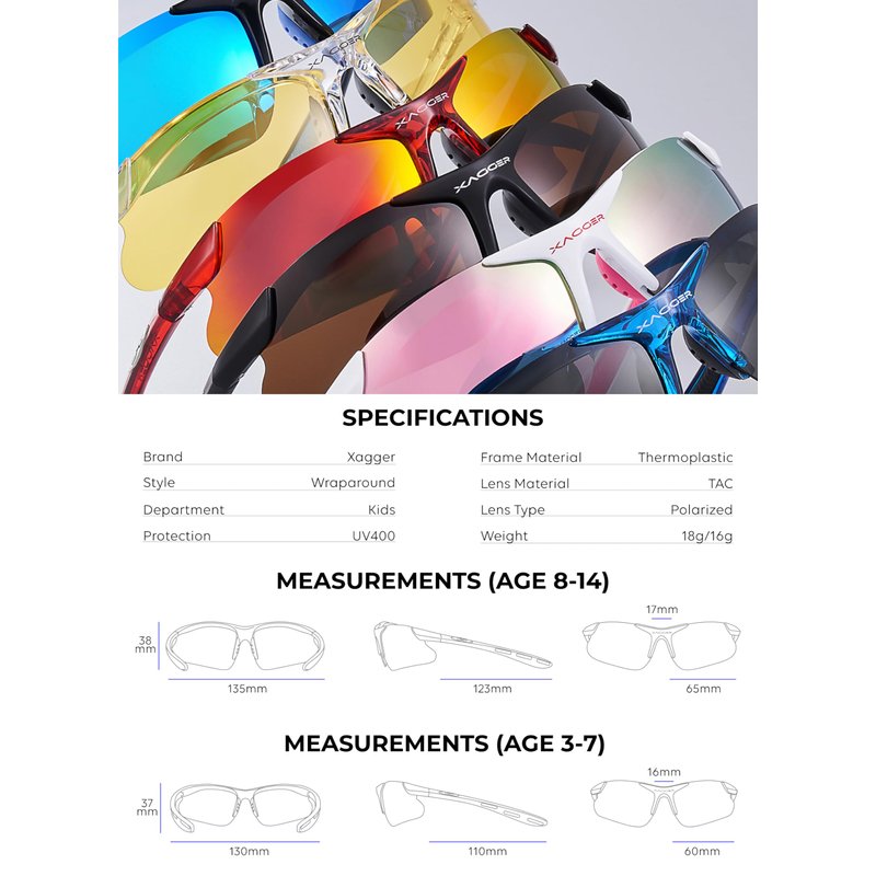 - 1.1MM TAC POLARIZED LENSES: Forget about discomfort from that annoying glare with our kids & youth sports sunglasses! The Xagger polarized anti-glare lens improves clarity and reduces eye strain, providing more comfort for your child during any outdoor activity.