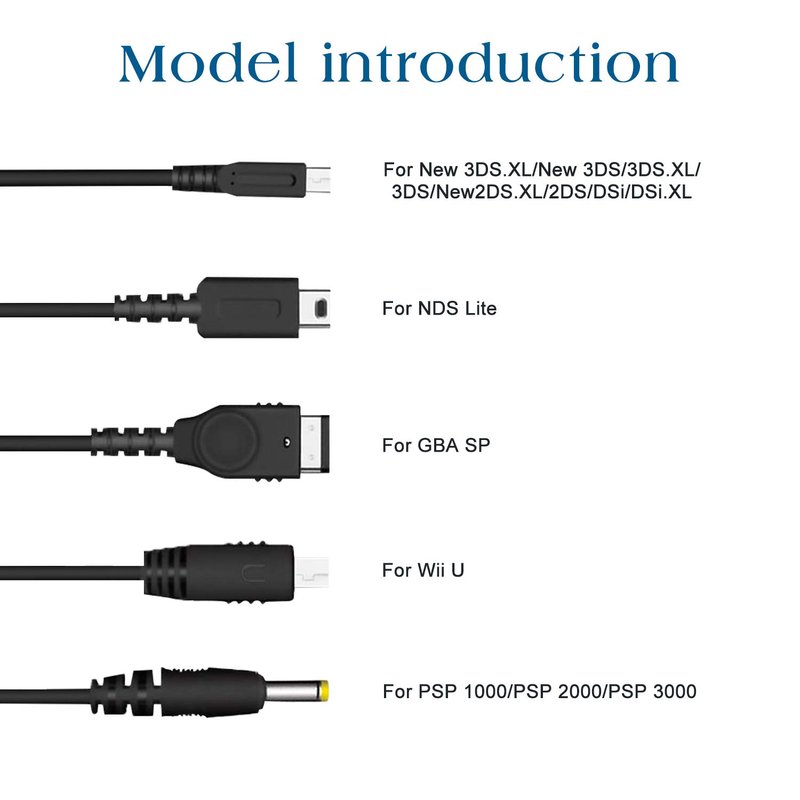 - ★【Multi Compatibility】:The USB charging cable compatible with Nintendo DS Lite,New 3DS XL,3DS XL,2DS,DSi XL,NDS/GBA SP(gameboy advance sp),Wii U,PSP 1000 2000 3000,can solve charging problems with most devices without having to replace the charging cable.