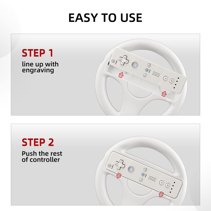 - ★ 【Easy to Use】:Simply slide your Wii and Wii U Remote Controller into the central panel of the steering wheel attachment, and all buttons will line up and work correctly