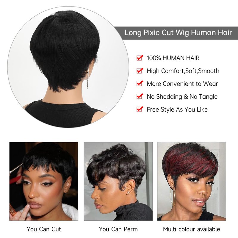 - Pixie Wig Applicable Occasions:Short Pixie Cut Wigs Is Easier To Wear And Take Care Of Than Long Hair, And It Can Be Worn Well In a Few Minutes.The Pixie Wig With Bangs For Women Is Suitable For All Occasions Such As Daily Wear, Birthday Party, Halloween Costumes, Cosplay, Concerts, Theme Parties And So On.Pixie Wig Human Hair Is Also Very Suitable As a Gift For Friends Or Family.