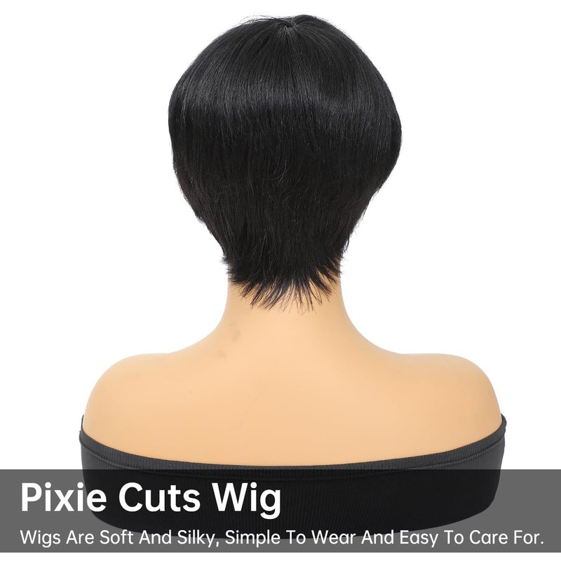 Item Name:Pixie Wigs For Black Women Human HairWig Type:Short Pixie Cut Wigs Human HairHair Color:1B#,Natural Black Color Texture: Black Short Layered Human Hair Wigs Made Method:Full Machine MadeCap Style : Glueless Elastic Net Cap, Comfortable And BreathableFixed Way :2 Adjusting Belts Are Convenient To Adjust And Not Easy To Fall Off Item Name: Pixie Wigs For Black Women Human Hair