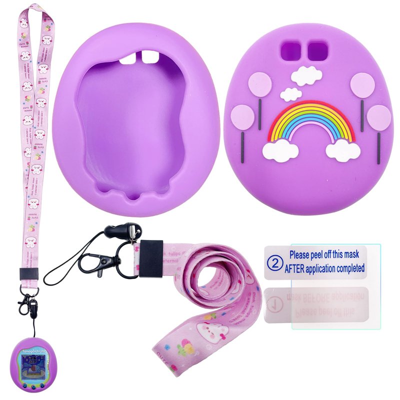 Xcivi Silicone Case Cover, Lanyard and Screen Protector Film for Tamagotchi Uni Virtual Interactive Pet Game Machine (Purple)