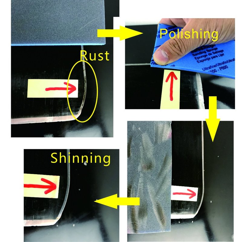 - One sanding Sponge(Mediu Grit 1000-800) for removed rust and polising steel edge.For fine buffing of edges. A few strokes will shine an edge.