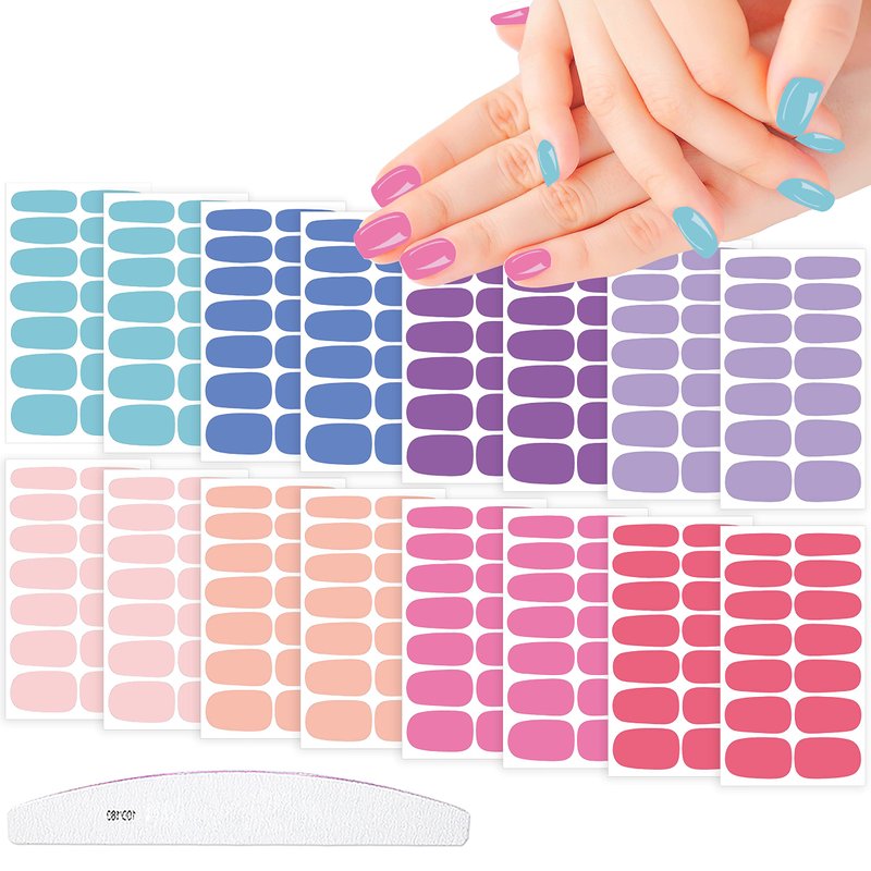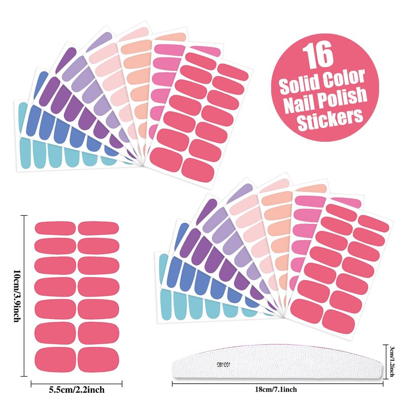 - 💖【Package Contents】:Comes with 16 sheets (8 colorss, 2 sheets each color) macaron solid color full nail stickers in different colors and sizes, each sheet contains 14 pieces, totally 224 pieces, sufficient to meet your DIY nail art decoration needs, comes with 1 piece moon shape nail file, can bring much convenience to the DIY process.